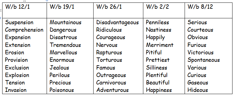 Weekly spelling list to learn