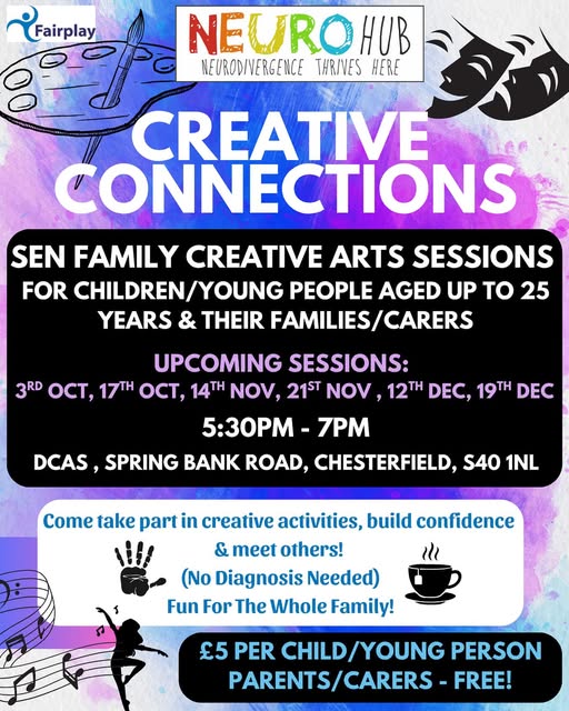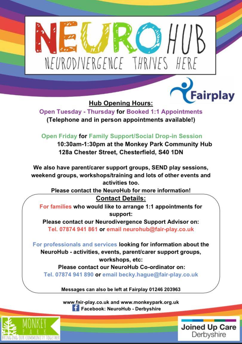 NeuroHub - Derbyshire offers support, information, advice, signposting, 1:1 person centred support, workshops/training, activities, parent/carer support groups, events for families with neurodivergent children and young people aged 0-25 years.